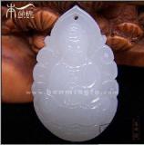 白底青的特点是底白如雪,绿色在白色的底子上显得很鲜艳,白绿分明。这一品种的翡翠极易识别:绿色在白底上呈斑状分布,透明度差,为不透明或微透明;玉件具纤维和细粒镶嵌结构,但以细粒结构为主;在显微镜下观察(须放大30~40倍),其表面常见孔眼或凹凸不平的结构。